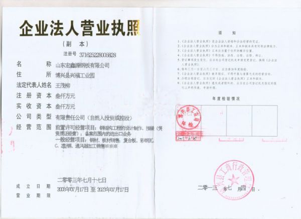 山东宏鑫源钢板有限公司始创于上世纪90年代,位于中国北方最大的彩涂钢板集散地山东博兴。经过二十余年的发展,公司现已发展成为集建筑钢品设计、生产、贸易、科研于一体的大型民营集团化企业。下辖山东宏鑫源钢板有限公司、山东源丰新型材料有限公司、山东省博兴县宏鑫源钢板贸易有限公司等多家全资子公司。