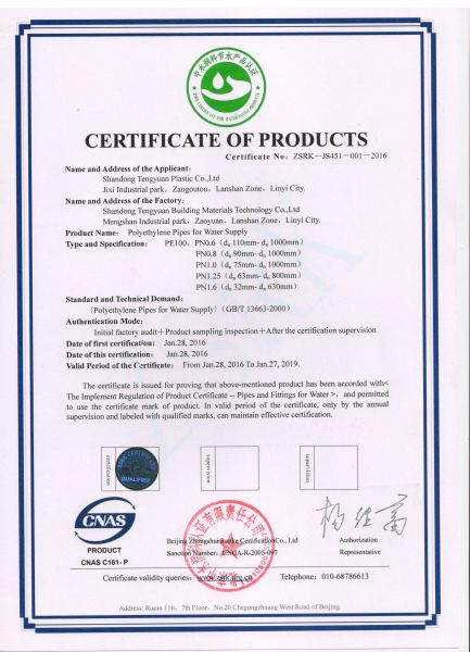 PE给水管材、PE燃气管材及PE阻燃、抗静电矿用管材、PE地源热泵管材、PE虹吸排水管材、PERT地暖管材以及配套PE给水管件等