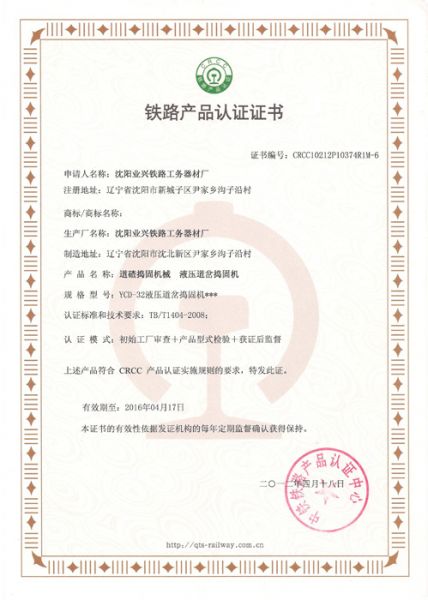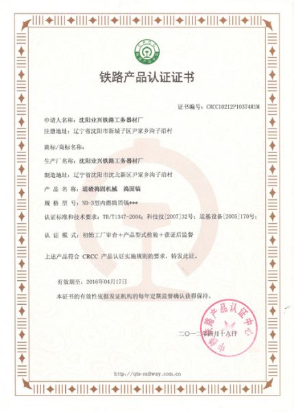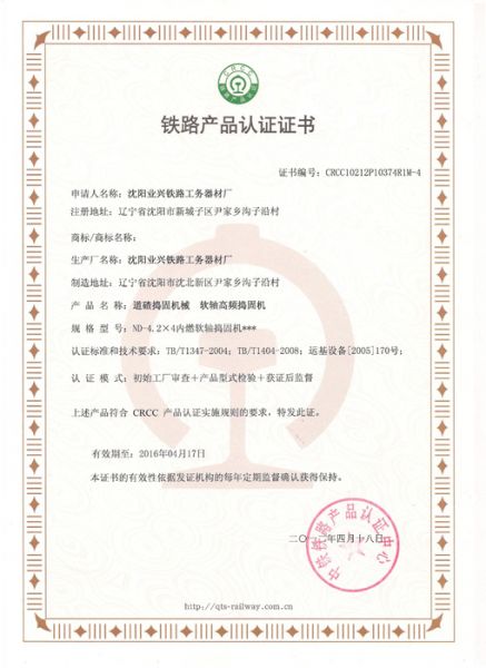 铁路产品认证证书2
