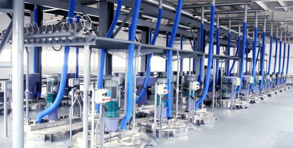料(如粉体输送量大可以采用索维优越的气流输送技术),物料混合采用索维与客户合作设计的桨叶搅